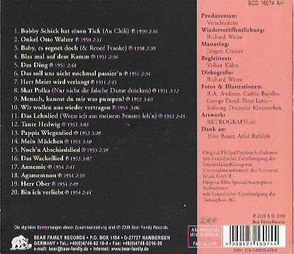 | 20-seitiges, nicht herausnehmbares Booklet mit einem Artikel über Heinz Erhardt von Volker Kühn, sowie Fotos, Filmplakaten und Informationen zu den auf dieser CD enthaltenen Liedern und deren Künstler. |